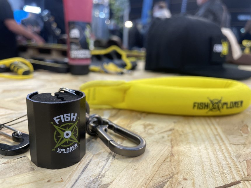 Le stand se voit de loin avec un grand brochet jaune qui flotte dans les airs ! Fish Explorer frappe très forts avec des leurres originaux venus du monde entier qu’on a hâte de tester. Ils font aussi beaucoup d’objets simples et pratiques comme cette petite bouée flottante à accrocher à une pince par exemple, ou ce porte-clé porte-canne qui fonctionne super bien.