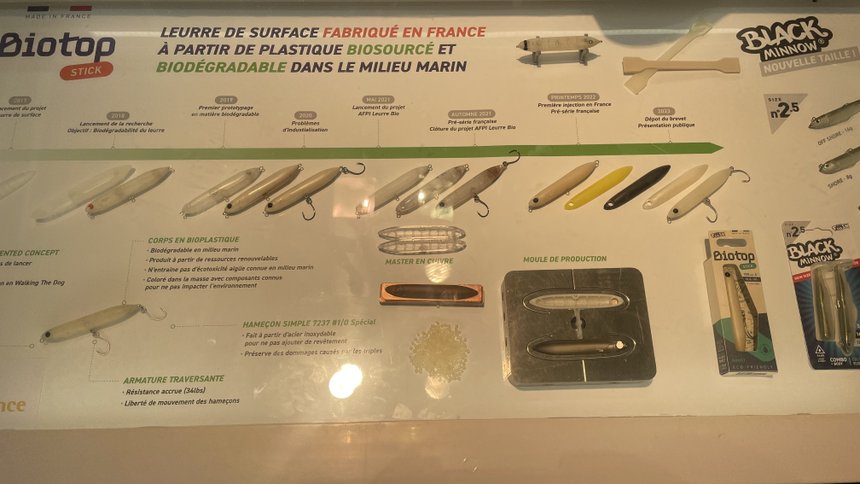 Comme d’habitude, il y a foule sur le stand de Fiiish. L’une des nouveautés est le leurre Biotop. Un top water bio 🙂 cela fait déjà quelques temps qu’on vous en parle sur La Pêche et les Poissons, il y aura trois coloris (Blanc, nacré et noir) disponibles à partir du printemps prochain. On est sur du made in France, avec des hameçons simples. Parfait pour le bar, vous le verrez dans le prochain épisode de #JPCV… Prix de vente : autour de 30€. On prépare une vidéo pour vous le présenter.