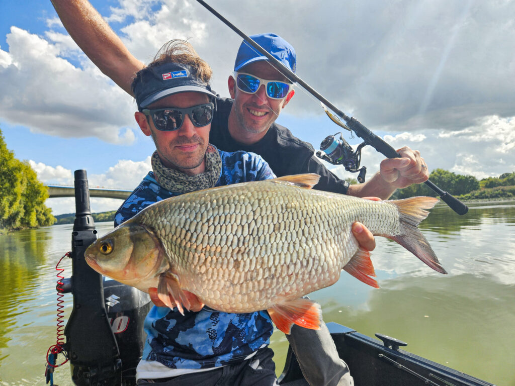 Nous décidons alors à l’unanimité d’abandonner les sandres peu coopératifs pour changer d’espèce et tester les capacités des Exceler avec des poissons nageurs. C’est juste avant de partir manger que Bill sort un magnifique ide à l’aide d’un crank Daiwa, de quoi faire plier le carbone de sa 662MHFS.