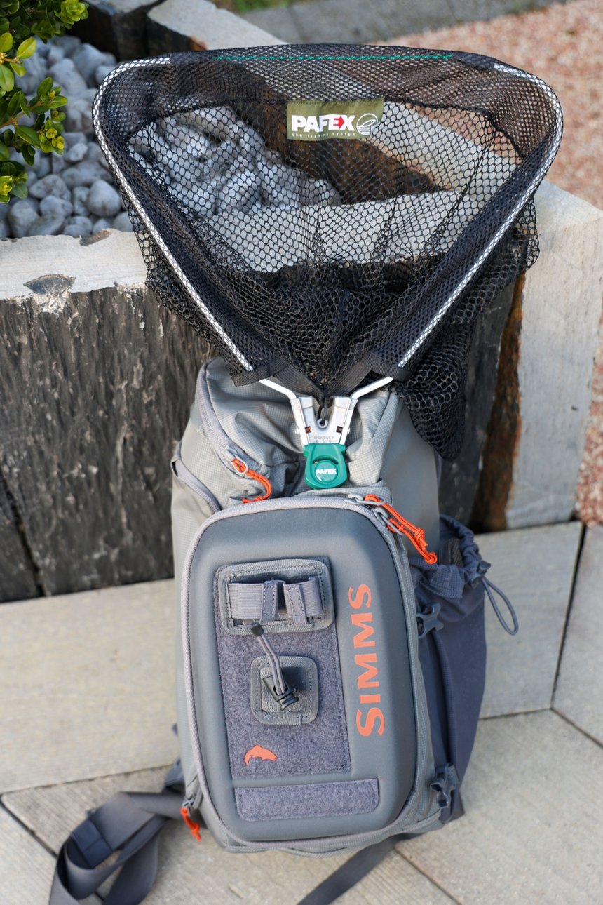 Lorsque l’on déambule au bord de l’eau, a fortiori lorsque l’on pratique le wading, on apprécie d’avoir à sa disposition tout son petit matériel. Si vous êtes en plein courant en wading à pêcher l’aspe, la truite ou le chevesne, vous n’avez pas forcément envie de retourner jusqu’à la berge pour refaire un montage, ou tout simplement envie de changer de leurres en toute sécurité, sans risquer d’en perdre quelques-uns à cause d’une mauvaise manœuvre. Le Freestone Sling Pack vous permet d’effectuer sans crainte les manœuvres nécessaires puisque votre sac bandoulière peut se transformer en un instant en un petit établi stable. Pour ce faire, il suffit tout simplement de défaire la sangle latérale et de faire basculer la partie sac à dos sur le devant, juste au-dessus de votre ventre. Il est alors très facile d’ouvrir la fermeture éclair pour accéder à une plateforme rigide en forme de cuvette. À noter qu’il est possible de piquer un ou plusieurs leurres dans la partie en mousse qui tapisse le fond de la structure.
