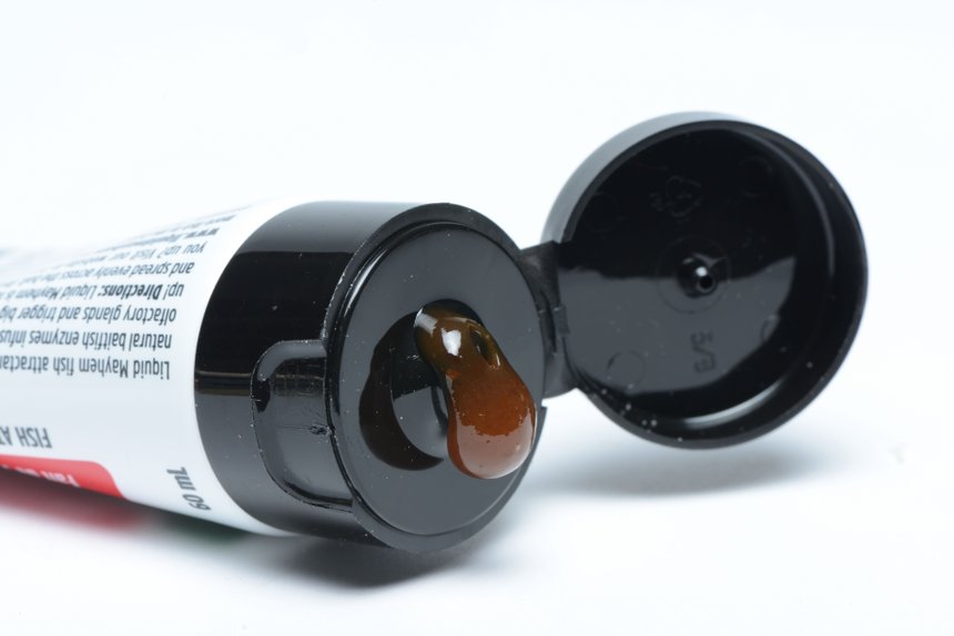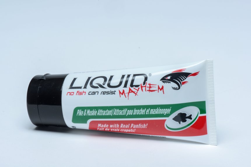 Qu’ils soient présentés sous forme de crème ou d’aérosol, tous les attractants promettent un rendement spectaculaire… et pas toujours au rendez-vous. J’en ai testé quelques-uns sans être jamais tout à fait convaincu, ne prenant finalement en compte que les inconvénients : mauvaise tenue sur le leurre obligeant à recharger sans cesse, tarif élevé et, surtout, odeur parfois immonde et tenace qui vous suit toute la journée et vous raccompagne à la maison… C’est pourquoi, testant le gel Mayhem, j’ai été agréablement surpris. Il est fourni dans un petit tube renfermant 60ml d’attractant (c’est peu par rapport à la taille du contenant) équipé d’un embout large permettant de badigeonner le leurre sans utiliser les doigts.