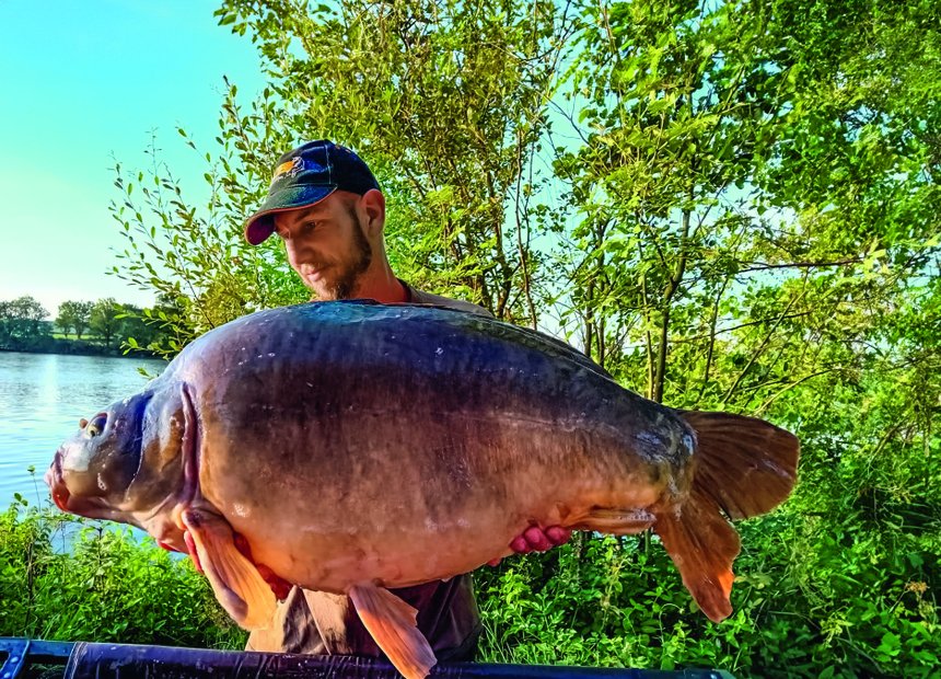 Ne connaissant pas l’étang, je me suis laissé 3 jours pour chercher et valider les spots. Comme déjà dit je n’en ai trouvé qu’un seul vraiment chaud où je ferai finalement près de 100 % de mes poissons. J’ai démarré en amorçant moyennement lourd les 3 spots pêchés, avec des particules flakes additionnées de peu de billes et en pêchant dessus à la flottante. Ça a été un peu long à démarrer et encore sur un seul spot, bien que j’en aie cherché d’autres sur près de 3 ha. J’ai donc tout misé sur le seul spot productif en passant ensuite sur un amorçage à la bille pure (3 kg/jour, comme notre Belge) et j’ai fini par tourner les derniers jours à 5/6 poissons par 24 heures 3 kg de billes pour 5/6 poissons ça fait 500 g par touche, de quoi continuer à entretenir un peu la zone. Sur la fin, il me restait tellement peu de billes que j’ai ressorti le fil soluble pour faire des stringers de 4 ou 5 bouillettes. Par carence, j’ai continué à amorcer les autres cannes uniquement avec des particules pour tenter de marquer les spots. Je ne doute pas un instant que les gardons puis les carpes y soient venus, mais concrètement elles semblent s’être complètement désintéressées de mon esche. J’ai évidemment essayé de mettre une seconde canne près du hot spot, en vain, c’était toujours la même qui démarrait. J’ai donc réellement tout misé sur une seule canne et j’ai un peu délaissé les autres. De même je n’ai eu que deux touches de nuit, y compris sur le hot spot. Difficile de dire pourquoi. Les carpes avaient deux périodes d’activité, me tirant du duvet tôt le matin, puis reprenant le soir vers 19 heures, jusqu’à la tombée de la nuit. Finalement ce n’était pas plus mal ainsi, d’autant que j’étais seul pour faire les photos de nuit, l’utilisation du sac étant interdit. Je m’en suis servi pour monter les poissons dans le zod, en le glissant sous le poisson déjà dans l’épuisette, et de jour le temps de préparer l’appareil photo.