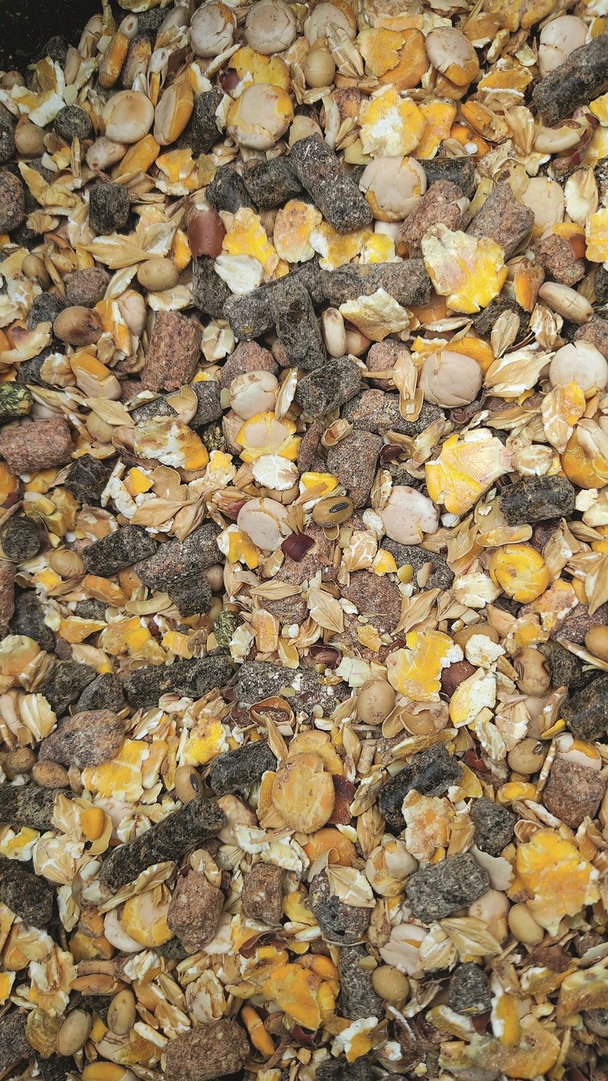 Sincèrement, je serai bien incapable de vous certifier que pêcher avec telle bouillette plutôt qu’avec telle autre change la donne. On entend souvent dire qu’on n’est pas là pour nourrir les poissons mais pour les prendre. Ce n’est pas faux. Maintenant quand on amorce c’est quand même pour que les poissons y reviennent. Quand on mesure l’évolution du nombre de prises entre les deux semaines (22 puis 63), considérant par ailleurs que le cycle de digestion est plus court en été, il est inéluctable qu’elles n’ont pas craché dessus. À l’ère des bouillettes ready-made dites d’amorçage, à 4 ou 5 euros, le kilo (qui de fait ne peuvent pas contenir un fort taux de farines de poisson de qualité par exemple), je m’interroge sur l’option économique de prendre des billes moitié moins chères pour en mettre deux fois plus… Mais il y a une autre option. Pour en revenir aux Belges ou aux Hollandais (12 heures de route pour venir) c’est clair que les frais annexes (carburant, péage autoroute) sont tels qu’ils ne peuvent pas descendre dans le Sud en dilettante, contrairement à votre serviteur et ses 20 kg de billes. Et puis eux, ce sont leurs vacances de l’année, pas comme le retraité qui vient en voisin. Bref, leur approche a rapporté, mais n’est clairement pas à la portée de toutes les bourses. Je m’en suis donc inspiré en l’adaptant avec mes moyens du moment : 20 kg de bouillettes donc, auxquels j’ai ajouté des particules flakes achetées sur place 35 € le sac de 25 kg! Notez que le prix au kilo est quasiment imbattable. Pour ceux qui ne connaissent pas, ce sont des graines toastées (elles sont sèches et déjà cuites), bien pratiques, puisqu’il suffit de les mouiller plus ou moins pour amorcer. Je mets 4 mesures d’eau pour 8 mesures de graines, ce qui permet avec 25 kg de particules sèches d’avoir « à la louche » 50 kg d’amorce, une fois mouillées et gonflées ce qui prend quelques minutes. Nota bene : le pisciculteur complémente l’alimentation de ses carpes exclusivement avec ces mêmes particules flakes, distribuées sèches.