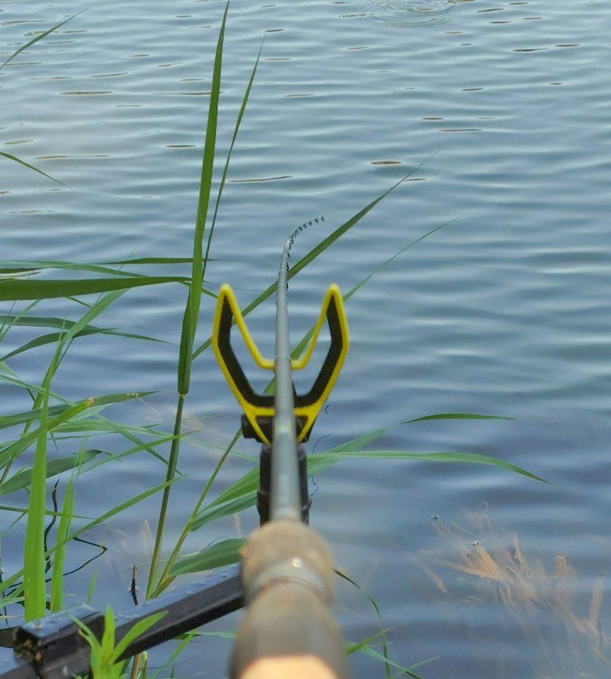 La veine de courant principale sur la berge opposée est une zone à prospecter en été lorsque les eaux mortes sont plus chaudes et moins oxygénées. Les poissons ont du mal à rester localisés mais semblent moins gênés par les promeneurs nombreux et les baignades des animaux domestiques. Il ne faut cependant pas pêcher en plein courant, mais chercher à s’en approcher au maximum en prenant garde de bien sonder la zone et de trouver un fond lisse sur lequel les aguichages sont possibles. Cette zone est favorable aux pêches de plaquettes, puis de brèmes plus grosses avec quelques mulets d’une taille souvent exceptionnelle. Il m’est arrivé de casser à l’épuisette faute de pouvoir rentrer la bête à l’intérieur! Pêcher ce courant demande une approche technique particulière, on se rapproche des pêches en courant classique ou des jours venteux qui remuent les masses d’eau des plus grands étangs. La différence ici, c’est le cisaillement. Le montage est posé dans un courant allant de gauche à droite, la bannière au milieu est dans une eau immobile, et le fil en sortie de canne traverse un flux inverse. Plusieurs ajustements sont nécessaires pour pallier ces contraintes. Il faut pêcher avec une canne de puissance medium équipée d’un scion rigide de 1,5/2 oz en carbone, de 3,60 m ou plus, afin de décoller la bannière du premier courant. Vous pouvez incliner la canne vers le ciel sur des supports afin de soustraire le plus de fil du courant proche. Sélectionnez un corps de ligne en Nylon, de 0,20 mm, qui a moins de prise au courant et moins tendance à ramasser les débris végétaux que la tresse. N’hésitez pas à exagérer le poids du feeder, 30 à 40 g, et à utiliser un modèle à plombée latérale afin de bien adhérer au sol. Ceci lui évitera de rouler et permettra une bonne tension de la bannière. Privilégiez un montage à plat ou avec une potence coulissante pour stabiliser l’esche sur le fond et empêcher les vibrations néfastes.