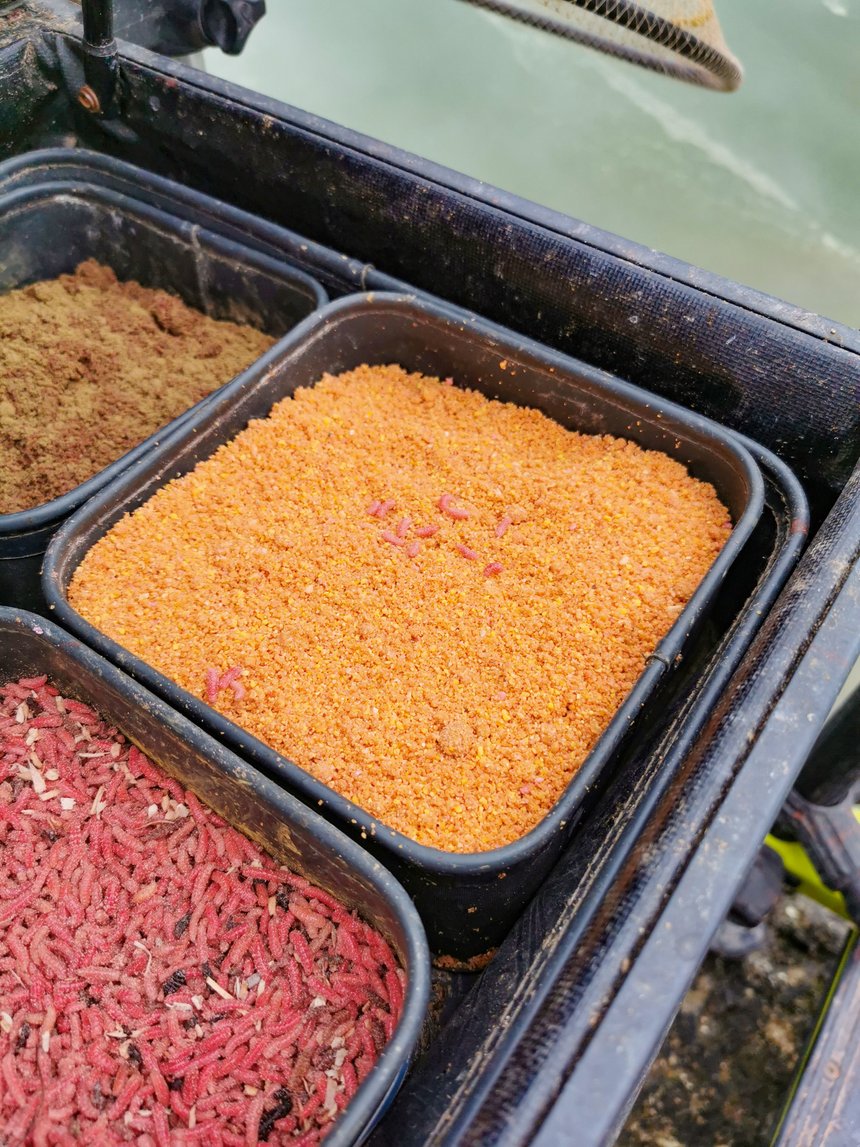 Lorsqu’il y a du courant, quelle que soit la profondeur d’eau, les particules fines et légères peuvent se déplacer rapidement et étaler les poissons sur plusieurs mètres. Les gros sujets, carassins, gros rotengles, gardons sont malins et savent reculer avec ces particules afin de se nourrir au calme au-delà de la frénésie du menu fretin. Pour les obliger à rester sur l’impact du feeder, l’amorce doit être collante, non dispersive et mouillée au maximum afin de gorger les particules d’eau et les alourdir. Les produits sucrés comme les biscuits, pain d’épice, tourteaux et farines de maïs permettent de lier les particules. Dans le commerce, les amorces nommées « fond », « gros gardon », « brème », « heavy », sont lourdes et collantes. A contrario, pour explorer les zones plus calmes, les dénominations « gardon », « explosive », « surface », « étang » sont plus volatiles et naviguent dans les couches d’eau. Sachez vous en servir !