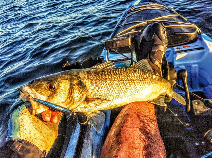 Côté flotteur on préférera un kayak propulsé et homologué bien sûr, plus facile pour maîtriser les dérives tout en pêchant. On privilégie une sortie groupée, en cas de pépin, il vaut mieux être plusieurs si cela vous arrive à quatre km de la mise à l’eau. Avec pédalier pour moi de préférence, je préfère en effet ce geste de pédaler, surtout sur de grandes distances mais cela reste un ressenti personnel. Ces kayaks spécialement étudiés pour la pêche en mer, sont stables, larges, avec pas mal de rangements et une capacité de stockage assez importante, c’est idéal pour une journée sur l’eau.