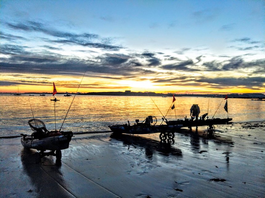 Tout d’abord prendre en compte la météo, on va privilégier les belles journées bien sûr, sans vent et surtout pas de vent de terre, avec des coefficients moyens, de 50 à 70, c’est l’idéal. Mise à l’eau au lever du jour pour profiter des premières lumières et faire de belles photos, le mieux est de partir au petit large avec la marée descendante, ce sera plus facile pour arriver sur les spots éloignés et surtout le retour se fera avec la montante. Deux heures avant l’étale de marée basse est le bon moment, ceci pour profiter de ce qu’on appelle la bascule et de la marée montante qui, dès que le courant de marée se forme, attise l’appétit des poissons. Quand on parle de petit large, ce n’est pas utile d’aller à 10 kilomètres, la bande des 3 ou 4 kilomètres est suffisante pour trouver des fonds qui vont être beaucoup plus importants que les bordures habituelles.