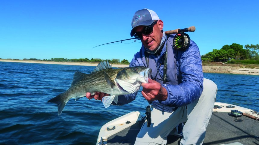Si vous avez la possibilité de louer un kayak, un paddle ou de sortir en bateau, vous pourrez tenter le bar en pleine mer. Privilégiez les bordures, les pointes, les plateaux rocheux et les courants. Il ne sert à rien de trop s’éloigner et consommer du carburant, les bars se baladent près des côtes et souvent dans peu d’eau (moins de 5 m). Regardez les oiseaux marins, comment les courants se forment et cherchez à pêcher là où les fonds changent. Les bars adorent se camoufler et se tenir à la limite des changements de substrats (sable/algues par exemple). Les pointes rocheuses, baies, anses ou zones avec changement de milieu sont toujours de bons postes. Une soie intermédiaire est souvent plus efficace pour garder votre mouche dans la bonne couche d’eau, en dérive, terminée par une pointe de 2,5 mètres en 25 à 30°. Une fois n’est pas coutume, des streamers de 10 à 15 cm de coloris tan, gris, blanc ou dos bleu, olive devraient vous rapporter quelques prises. Changez régulièrement de mouches en l’absence de touche pour trouver le menu du jour.