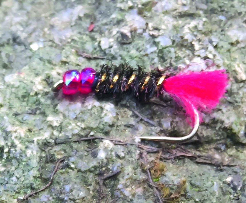 - Mouches: Palmer type Red tag et terrestres. Nymphes d’ensemble.