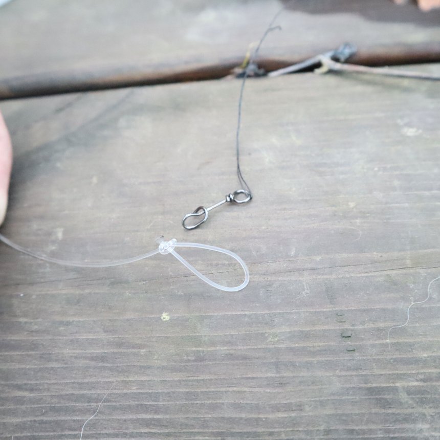 Au contraire, pour les pêches lentes avec par exemple des streamers « suspending » ou de surface, je vais préférer le fluorocarbone de 50 à 90 centièmes. J’utilise la plage de 50/60 pour des pêches de printemps fines en eau claire, où les longues pauses sont souvent nécessaires. Sur ces pêches visuelles, avec un peu d’entraînement et de self-control (pour ne pas trop appuyer les ferrages), il est tout à fait possible d’affiner la pointe pour laisser au streamer plus de liberté de nage. N’oubliez toutefois pas de diminuer la finesse du fer de votre hameçon pour faciliter la pénétration de celui-ci sur des ferrages plus « doux ». J’utilise un bon 70/80 centièmes pour les pêches de surface. Les poissons ont toujours tendance à nous surprendre lors de ces pêches, un ferrage brutal nécessite l’emploi d’un avançon fort. De plus, les brochets, bien que très maladroits, ont tendance à vite engamer les streamers de surface lorsqu’ils ont réussi à enfin « cadrer » leur prise. Sur mes avançons acier, une agrafe dite « rapide » me suit depuis des années sans aucun souci de fiabilité. Quant au fluorocarbone, j’utilise un nœud agrafe, simple mais terriblement efficace. Il m’accompagne même en exotique sur les poissons les plus exigeants. Réalisation du nœud agrafe : prendre un fluorocarbone dit « hard », effectuer un petit « champignon » à l’extrémité avec un briquet puis former à quelques centimètres un simple nœud. Passez le « champignon » dans l’œillet de votre mouche, puis repassez-le dans le nœud simple. Serrez après avoir ajusté la longueur de la boucle ainsi formée et c’est fini !