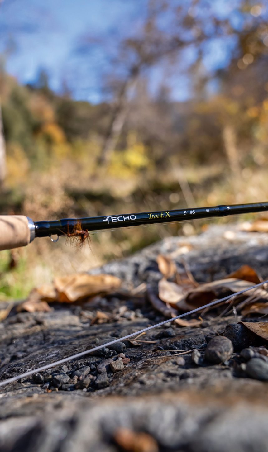 En action de pêche, cette nouvelle canne Echo Trout X se révèle particulièrement efficace. Elle permet en tout premier lieu de lancer très facilement, que l’on soit débutant ou pêcheur expérimenté. Sur le modèle en 9 pieds soie 5, on découvre une action vraiment très recherchée. Plutôt de pointe, l’action reste tout de même très douce et l’on ne ressent jamais de raideur dans l’action sur chaque distance de lancer. La technologie VSS, qui signifie « variable sweet spot », permet d’optimiser cette canne et de la rendre plus performante. Chaque palier de lancer permet de ressentir son action inédite à très courtes distances, moyennes distances ou sur de longs shoots. Elle se marie très bien à une soie WF5 ou une WF4 Sylk premium synthétique que vous pouvez davantage utiliser en mouche sèche. On est loin des standards américains parfois trop puissants sous nos contrées. L’équilibre est parfait, car cette canne reste très légère et absolument pas fatigante. Elle permet, de surcroît, des ferrages secs et rapides grâce à la douceur de son scion. On peut noter un très gros travail sur l’action faite par la marque Echo qui, sur ce point, semble être au meilleur niveau de la technologie actuelle sur les blanks modernes. Les points forts de cette canne restent aussi son excellent rapport qualité-prix qui la place dans les meilleures offres du moment.