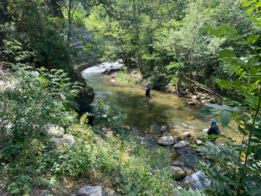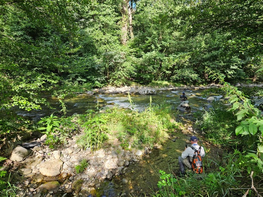 Sur la Têt, Sébastien Delcor avait pris un premier poisson au bout de deux minutes… Les compteurs s’affolent après deux heures de pêche. Finalement, l’orage qui s’est déclenché hier en montagne et a fait monter le niveau a peut-être été bénéfique !!