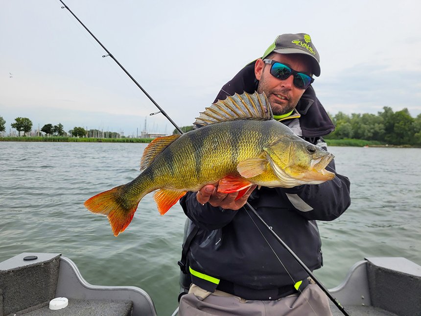 La tactique était osée sur un lac que les deux jeunes pêcheurs avaient pré-fishé avec succès (3 sandres métrés et un 92 cm en 52 minutes…) : un seul pêchait, l’autre était au sondeur. « On avait trois sondes live sur le bateau, ça peut paraître beaucoup mais elles étaient trop utiles, expliquaient en toute transparence les deux champions lors du débrief. On avait chacun du côté du bateau une LVS 62 (LiveScope) qui nous servaient à prospecter. Et on avait une LVS 34 qui servait à finaliser, affiner, déterminer l’espèce pour choisir le leurre. Et à l’avant on avait une Active Target 2 pour pêcher dans les structures mais ça n’a pas été le cas aujourd’hui… L’objectif était d’utiliser les LVS 62 pour regarder loin, [samedi] on avait 70 mètres de portée donc 140 m de périph’. On avait vraiment un travail d’équipe, on les trouvait, je les pointais, et Armand choisissait la canne et pêchait. Ca parait facile comme ça mais on a fait ça du début à la fin, c’était dur. Les poissons la première journée étaient décollés, plus faciles à capter et à pêcher. Ce dimanche, avec la pression de pêche, les poissons étaient calés sur le fond, plus durs à trouver mais presque plus faciles à pêcher. Donc on a juste utilisé la LVS 34 avec 15 mètres de portée, c’était le seul moyen de les voir, on voyait l’équivalent d’un tronc, juste la caudale et à peine la tête entre les miliers de vifs, de eprches et des poissons blancs, c’était assez technique. » Les deux pêcheurs ne se sont pas focalisés sur les couleurs des leurres mais plus sur la hauteur d’eau, le poids des leurres et la bonne vitesse de récupération.