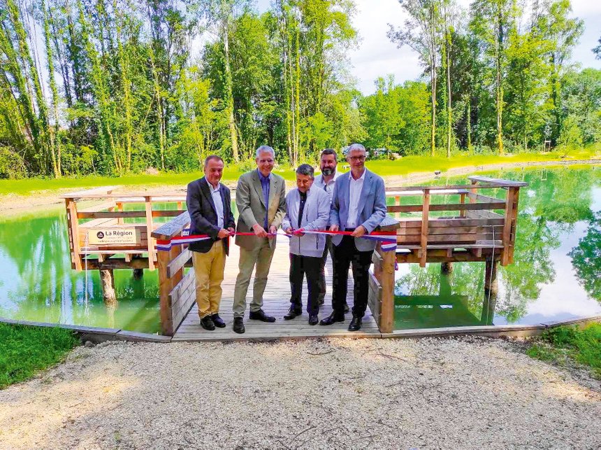 Sous l’impulsion du conseil d’administration et de son président Hervé Bonzi, la fédération de l’Isère a donc commencé à la fin de l’année 2022 ses travaux pour la construction d’un plan d’eau pédagogique juste à côté de son siège sur son remarquable site de Saint-Quentin-sur-Isère, au pied des falaises du massif du Vercors. Financé par la Région Auvergne-Rhône-Alpes, dans le cadre du plan France Relance, ainsi que par le conseil départemental à hauteur de 300000 euros (sur un budget total avoisinant 400000 euros) et piloté par l’équipe de la Fédération, cet étang a été livré à l’été 2023. D’une superficie d’un demi-hectare environ, il est alimenté par la nappe de l’Isère et ses berges en pente douce ont été aménagées pour recevoir le très jeune public. Un grand ponton à mobilité réduite a été construit dans l’anse principale et une zone de haut-fond a été prévue pour faciliter la reproduction des cyprinidés. Ce plan d’eau aura vocation à être fréquenté régulièrement par les sept APN, Ateliers pêche nature, du département pour des sorties de pêche au coup et des rencontres inter-APN. Mais il sera aussi utilisé directement par la fédération départementale et ses salariés qui travaillent sur place. Des partenariats sont en cours avec l’Éducation nationale et des centres de loisirs et de vacances de manière à accueillir de jeunes enfants.