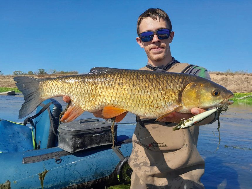 Tous ces points abordés, « let’s go fishing ». L’organisation est millimétrée, il faut dire que Sylvain est bien rodé. Il n’en est pas à sa première sortie en float tube sur la Loire. C’est donc par une belle journée du mois d’août que me voilà debout bien avant l’aurore, à 4 heures du matin… Nous avons prévu un petit « 36 heures » de float tube sur la Loire. Lubin et Sylvain sont déjà debout, prêts à me faire découvrir ce road trip qui leur est si cher, tandis que je peine à ouvrir les yeux. Les voitures sont chargées, direction la Loire où nous retrouverons Rémy, notre quatrième acolyte. Nous partons à deux voitures. En effet, pour être autonomes, nous déposons une voiture en aval qui restera sur place et que nous retrouverons à la fin de la descente, puis nous partons ensuite avec l’autre voiture et tout le matériel vers le point de départ. Nous récupérerons la voiture du point de départ une fois la descente en float terminée. Arrivés sur place, la Loire est majestueuse. Il est 5 h 45 du matin, la brume s’échappe de la surface de l’eau et le soleil commence tout juste à se lever. Ces moments hors du temps nous font savoir pourquoi nous aimons tant la pêche. Les foat tubes gonflés et chargés, nous voilà tous les quatre sur l’eau, prêts à en découdre avec ce fleuve magique. L’idée est simple, pêcher les silures au « fireball » à vue tant que nous avons des vifs, puis pêcher les aspes au leurre de surface. Si besoin, nous essayerons d’attraper des chevesnes ou des poissons blancs pour retenter les silures en fireball une fois notre stock de vif épuisé. L’eau est incroyablement claire, c’est un véritable aquarium où se mêlent carpes, goujons, gardons, chevesnes et autres poissons blancs. Mais attention, il faut toujours avoir l’œil vif et ne pas se laisser avoir par ce magnifique ballet subaquatique.