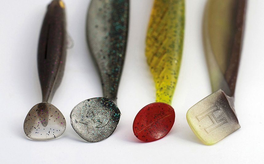 Mais attention, si une gomme tendre est donc bien un atout pour les pêches lentes, elle n’apporte rien pour les pêches rapides, et serait même plutôt un inconvénient. D’abord parce qu’elle est inutilement fragile et tient mal sur la tête plombée, mais surtout parce qu’un shad fait d’une gomme dure émet plus de vibrations. Les meilleurs shads pour la pêche en traction (tirées vives), animations sèches et récupération dynamiques sont généralement en gommes dures.