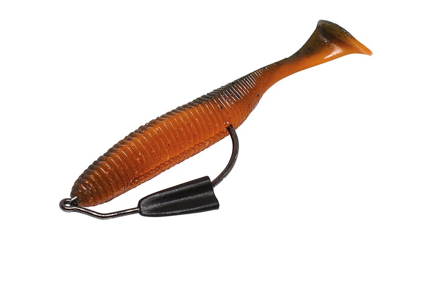 On a là la recette du shad pour pêcher en traction avec une fréquence vibratoire élevée, que l’on sent souvent vibrer jusque dans la canne, mais qui ne vaudra pas grand-chose en pêche lente. Toutefois, certains paddles biseautés de grande taille (swimbaits) ont une telle surface d’attaque qu’ils peuvent être ramenés assez lentement, surtout si le pédoncule caudal est assez fin. Ce genre de flap massif donne généralement un fort rolling au corps, qui peut même devenir excessif si on force l’allure. La plupart des modèles de ce type testés ne commençaient à nager qu’entre 1,4 et 2km/h, soit 40 et 60cm/s.