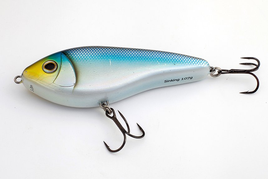Les stickbaits ont la forme d’un gros cigare et sont lestés vers l’arrière, de sorte qu’ils se lancent très loin. Ils s’animent par petits coups secs du scion, avec reprise du mou aussitôt, entre chaque impulsion. Un coup envoie d’un côté, le suivant de l’autre, en une nage zigzagante appelée walking the dog. Il est conseillé de marquer quelques pauses sur les meilleures zones, mais dans l’ensemble c’est une pêche de prospection assez rapide.