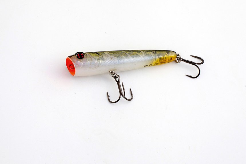 Les poppers ont une forme de poisson, grenouille ou autre bestiole et une gueule concave. Sur un coup de scion sec, cette gueule pousse l’eau en formant une grosse bulle qui éclate bruyamment. C’est donc un leurre très sonore. L’animation standard consiste à popper un ou deux coups et à observer une pause de 2-3 s ou plus. C’est une pêche assez lente, insistante.
