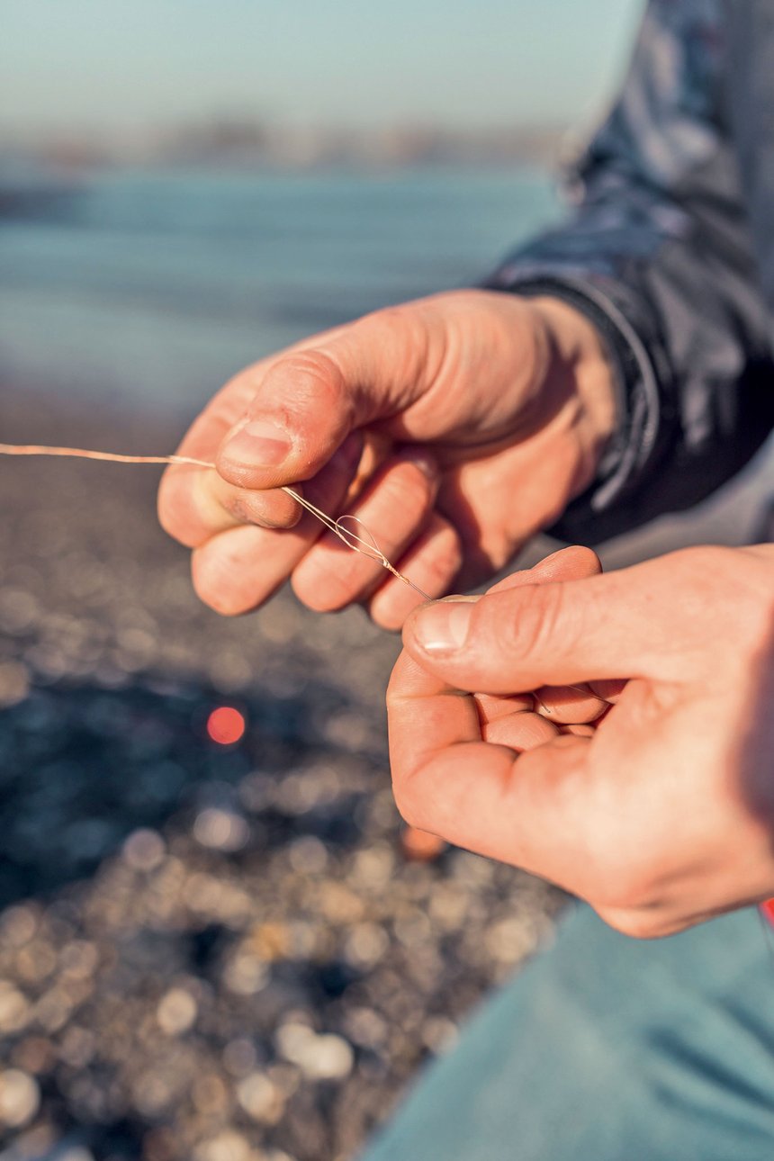 Si un beau percidé se pend au bout de la ligne, vous ne craindrez pas la rupture de cette dernière. Le bas de ligne Le fluorocarbone est très résistant à l’abrasion, il constitue de ce fait une protection efficace contre les bancs de moules et toutes les autres structures abrasives que l’on rencontre au fond des canaux ou des rivières. Si nécessaire, il assure également un premier niveau de protection contre les dents du brochet. J’utilise en général 50 cm de 30 à 35/100 pour confectionner la pointe de ma ligne. De nombreux nœuds sont susceptibles de convenir pour connecter la tresse et le bas de ligne, mais celui que je privilégie est sans aucun doute le nœud d’Albright. Je n’utilise personnellement pas d’agrafe, car je trouve que c’est un point de rupture supplémentaire et inutile. Un nœud simple est parfait pour relier votre tête plombée au bas de ligne.