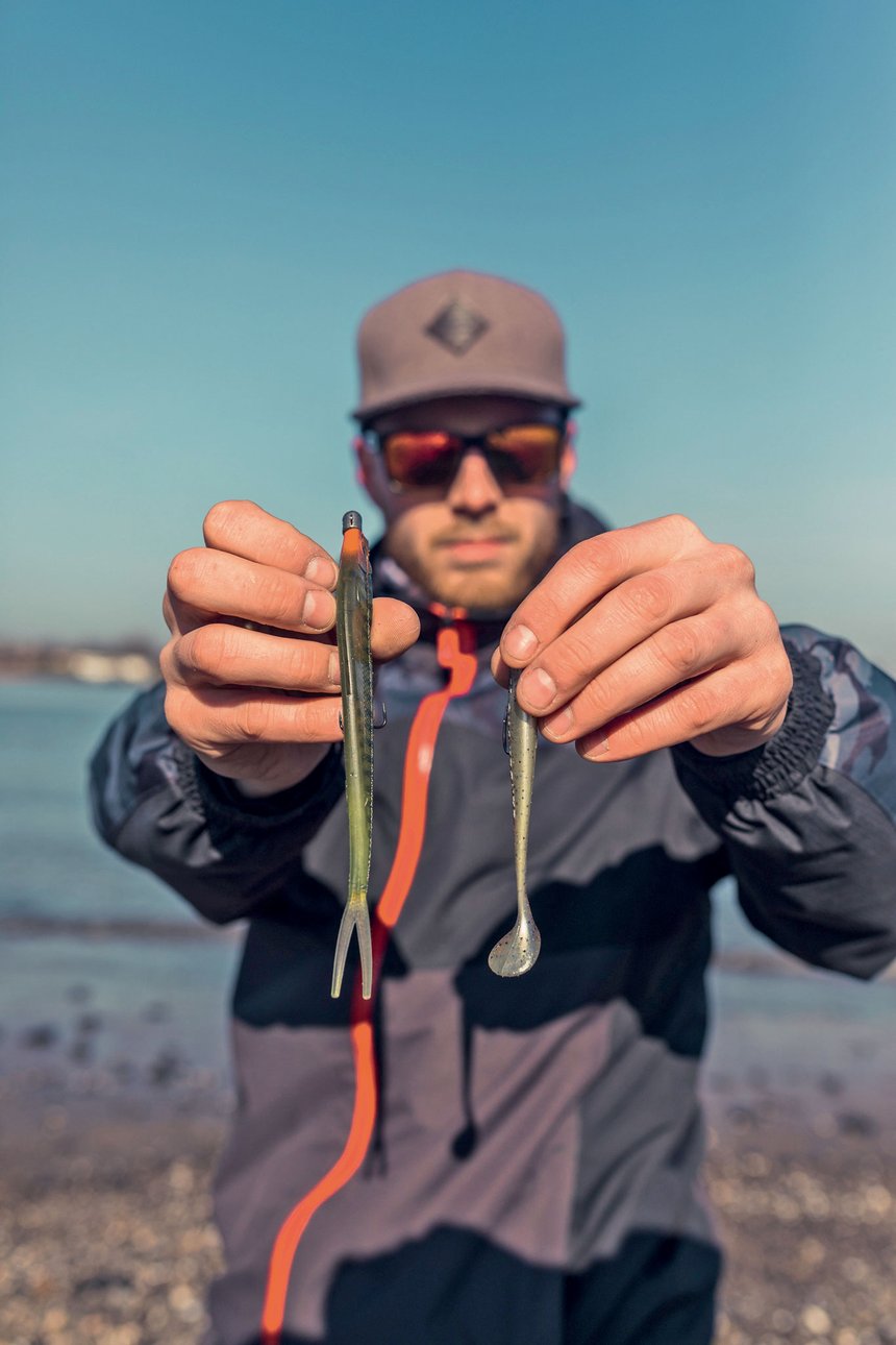 Cette catégorie possède un gros battoir en guise de queue qui lui permet de déplacer beaucoup d’eau lorsqu’il est en action. Ce déplacement implique plus d’actions, plus de vibrations, et donc, plus de mouvements dans l’eau. La forme et la taille de l’appendice caudal sont les clés qui définissent l’action de ce leurre. C’est le leurre de base, en ce qui me concerne, pour la pêche du sandre. La forme globale peut varier d’un leurre à l’autre, mais j’utilise aussi bien les modèles minces que ceux avec une forte hauteur de corps. En bref, le shad, comme on l’appelle régulièrement, est une longue réussite depuis l’apparition des leurres souples et il doit impérativement figurer dans toutes les boîtes, de celles du novice à celles de l’expert.