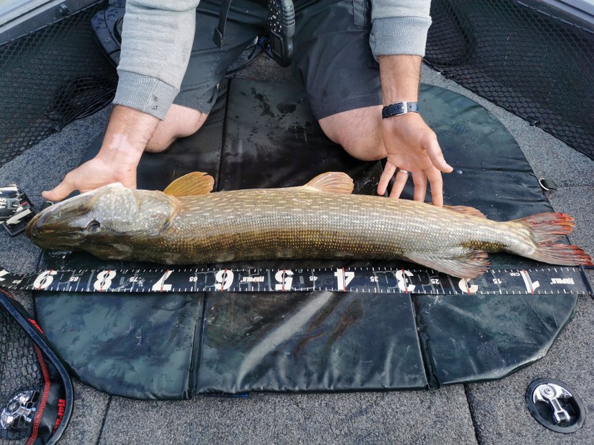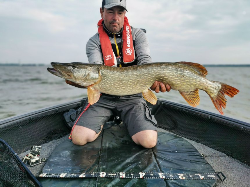 Voilà encore un outil sur lequel il ne faut pas faire l’impasse. Elle doit posséder plusieurs qualités. Sa taille d’ouverture tout d’abord, qui doit être large (au moins 70/80 cm) afin de rentrer facilement les poissons les plus grands (c’est fou comme une épuisette moyenne paraît petite quand elle se trouve nez à nez avec un poisson de 110 cm). Elle doit logiquement être solide et munie de mailles caoutchoutées. Ces dernières limitent l’accrochage des hameçons mais, surtout, elles épargnent le mucus et les écailles des poissons. Enfin, je préconise des filets profonds afin de pouvoir garder facilement une prise dans l’eau, le temps de préparer le tapis de réception et l’appareil photo… Deux choses encore à propos de l’épuisette : gardez le filet en main lors de « l’épuisetage » afin de limiter les risques d’accrochage d’un triple baladeur qui aboutira forcément au décrochage du poisson qui ne pourra pas rentrer dedans… Enfin, même dans les meilleures épuisettes, les poissons peuvent se débattre et provoquer un véritable sac de noeuds préjudiciable pour eux, pour le matériel et le temps de pêche. Je vous conseille donc de décrocher un maximum de poissons directement dans l’eau lorsque c’est possible. Les grandes pinces sont alors souvent utiles. Moins vous le manipulez, mieux le brochet se portera. En bref, ne mettez dans l’épuisette que les poissons que vous voulez prendre en photo ou qui sont profondément piqués.