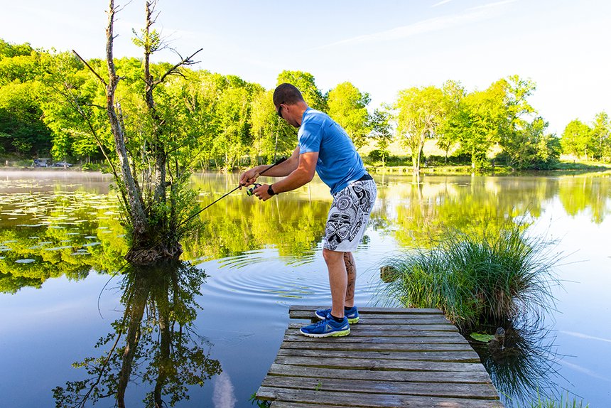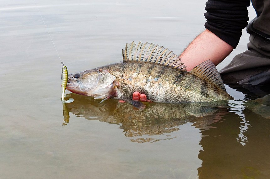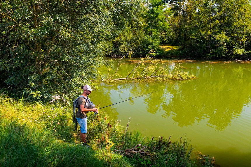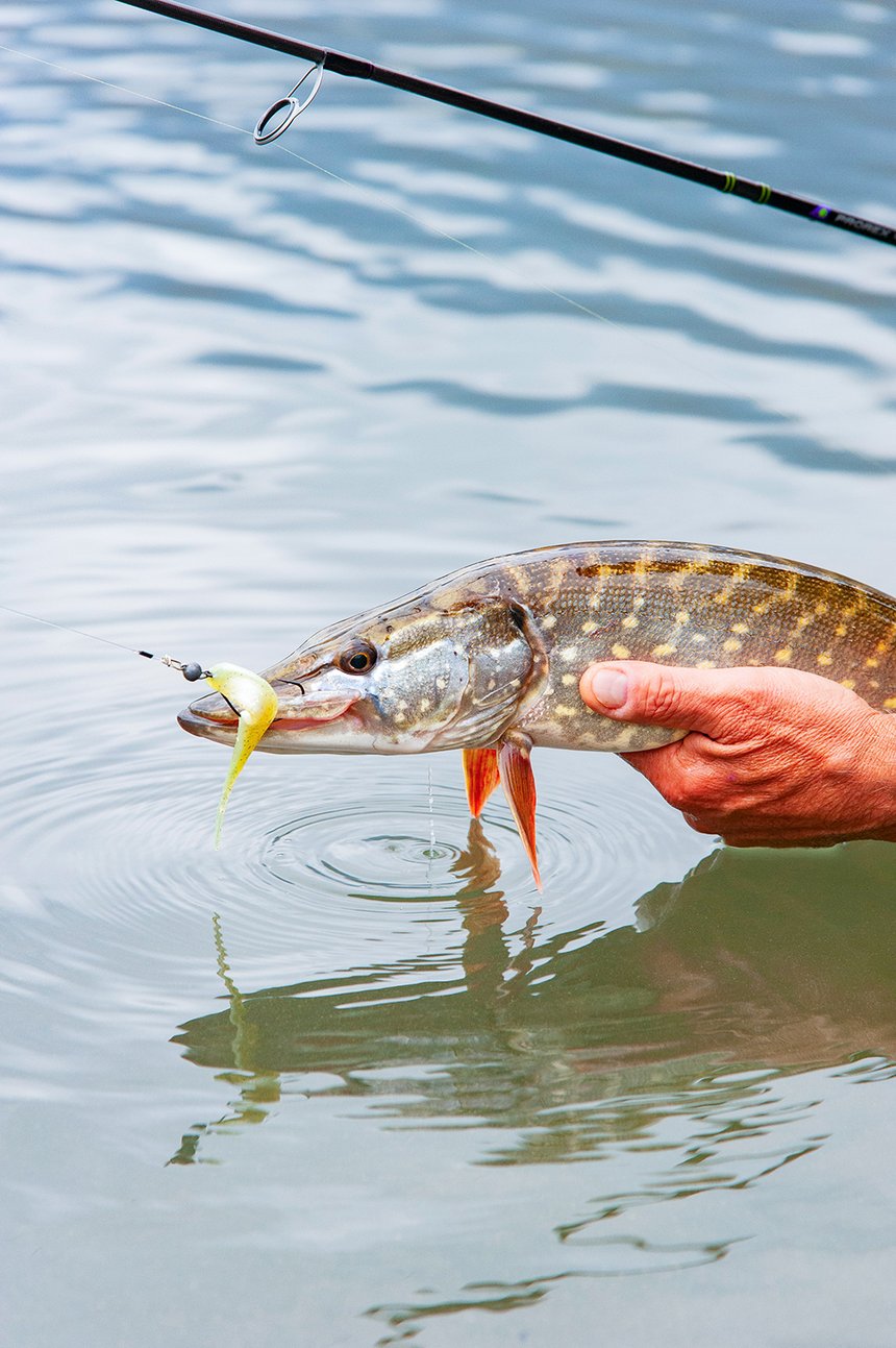 Vous pouvez commencer par un leurre « discret » et de taille modeste, pour ensuite augmenter le volume et la visibilité ainsi que les vibrations ! Il est également possible, en cas de profondeur supérieure à deux mètres, d’animer le montage en dents de scie, en le faisant monter rapidement dans la couche d’eau et le laissant redescendre libre au fond, vous répétez l’opération jusqu’à la touche qui aura quasiment toujours lieu à la descente. Ensuite, il est temps d’exploiter le leurre de type finesse. Là, il s’agit de lancer votre leurre non plombé, si ce n’est par son propre poids augmenté de celui de l’hameçon dans les branches noyées, entre les feuilles de nénuphars ou directement dans les massifs de myriophylles ou autres herbiers aquatiques. Dans cet environnement, le montage n’est pêchant que peu de temps, ou sur peu de surface. Il convient donc de profiter de sa lente immersion pour le faire trembler via de petits coups de scion, ou lui imprimer de petites tirées latérales avant de le laisser reprendre un peu de profondeur et ainsi de suite.