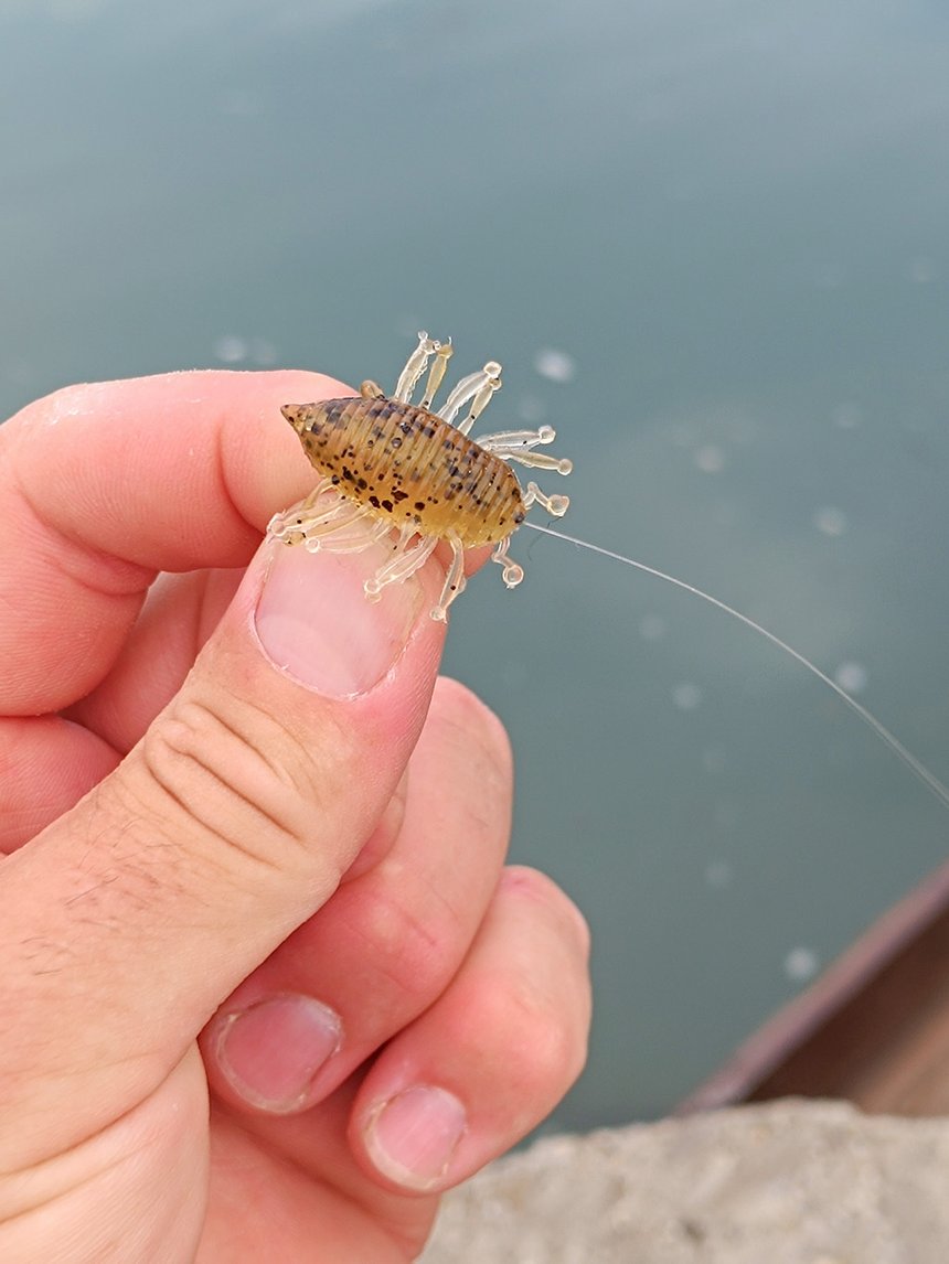 - Leurres souples : en 2 ou 3″ pouces (shad et grub) de couleurs naturelles et incitatives