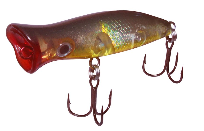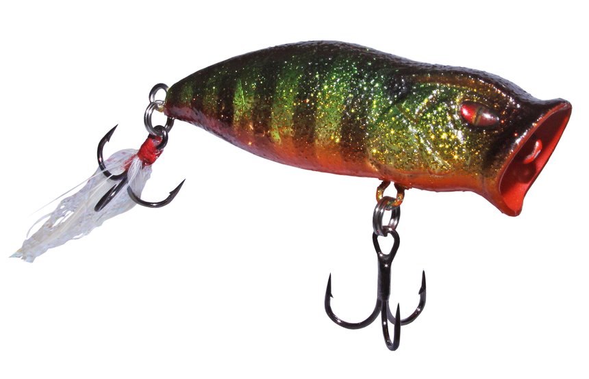 C’est en multipliant les éclaboussures, les bouillonnements, les gerbes d’eau, les zigzags et les glissades les plus aléatoires que les poppers attirent irrésistiblement l’attention des prédateurs. Parmi les cibles, on pense bien sûr au black-bass mais la perche y résiste rarement elle aussi surtout lorsqu’elle est en activité. Et puis, le client n’est pas toujours celui que l’on visait. Brochet, chevesne et parfois aspe se laissent aussi volontiers berner. Pour une pêche légère de fin d’été, choisissez un petit popper d’une taille compris entre 4 et 8 cm acceptant plusieurs types d’animation. Il doit créer des éclaboussures mais aussi pouvoir nager en zigzags, c’est-à-dire en walking the dog, sur des tirées courtes et bien rythmées. Il faut toujours se donner la possibilité de varier toutes ces animations.