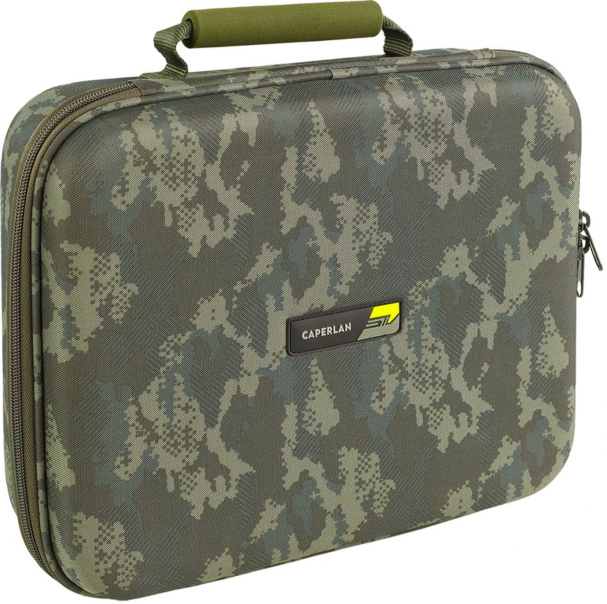 Ces deux sacs de type Carry protect de Caperlan sont entièrement coqués pour protéger efficacement votre équipement fragile et sensible. D’un joli vert avec des empiècements camouflés sur certaines faces, ils sont solides et bien ordonnés à l’intérieur. Le petit modèle comporte trois compartiments, le grand en compte cinq avec neuf poches supplémentaires.