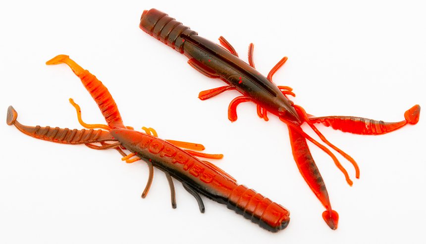 Les Carnelius de Toppies sont très réalistes. Ces petites écrevisses sont fabriquées avec une matière très souple et élastique, sans PVC. Elles flottent légèrement et sont un peu salées pour parfaire l’équilibre dans l’eau. Les fines pattes et pinces bougent à la moindre animation. Elles sont parfaites pour la perche, le black-bass et les petits poissons côtiers. Les coloris Red Pirate et Chartreuse Gold sont actifs aux UV.