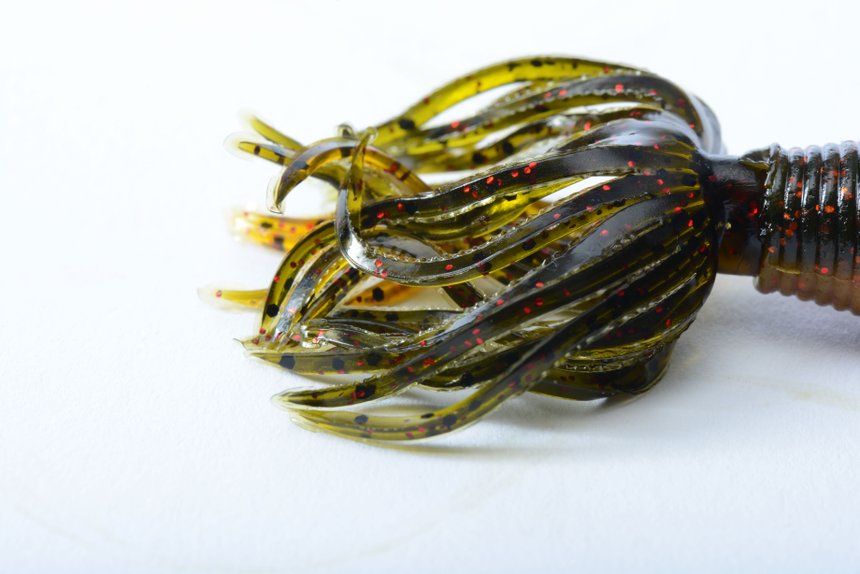 Le Fat Ika de Gary Yamamoto est un leurre que l’on peut monter avec un plomb texan en tête, mais il est surtout conçu pour être utilisé en weightless avec un hameçon wide gap (large ouverture), un n°4/0 ou 5/0, en rapport avec sa taille de corps relativement trapu. Son volume et son poids (lequel peut légèrement varier selon la teneur en sel et en paillettes) permettent de le skipper facilement afin qu’il puisse ricocher sous les frondaisons.