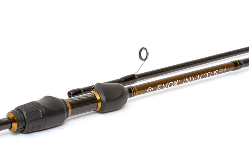 Evok est la marque propre de Pacific Pêche, destinée à la pêche des carnassiers. Il y a de nombreux modèles de cannes dont la série Invitcus. J’ai testé la 722 ML, c’est-à-dire 7,22 pieds soit 2,20 m de longueur pour une puissance de 5 à 14 g.
