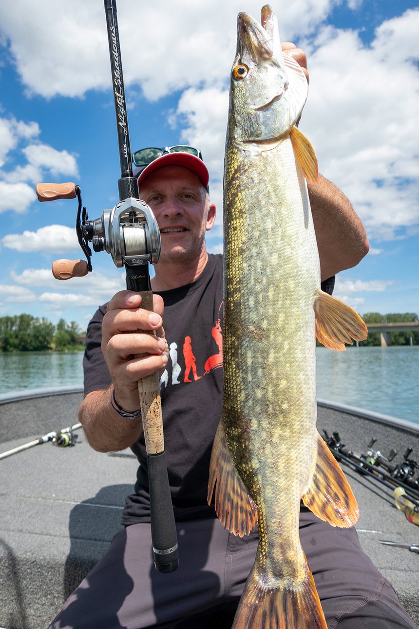 Le Hundo est doté d’un double système de freinage de la bobine, magnétique, à réglage micrométrique et centrifuge. Il est aisé de trouver la bonne combinaison entre les lancers longs et le freinage de la bobine. Je me suis beaucoup amusé avec les réglages et ils sont très efficaces. On peut lancer des leurres de 7 à 60 g comme mentionné en effet. La manivelle est de bonne taille, 88 mm et les poignées en caoutchouc structuré sont ergonomiques. Une housse en néoprène le protège très efficacement lors des transports.