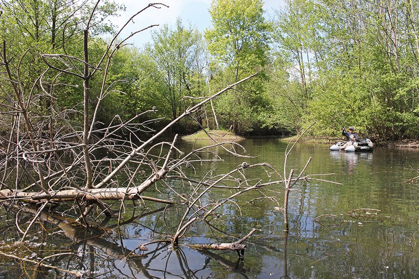 Pour pêcher correctement une bordure encombrée, il est préférable de lui faire face et d’en être assez proche. Un pêcheur embarqué sera donc toujours plus à l’aise que celui qui pratique du bord, contraint de pénétrer dans l’eau ou de ne pêcher que les rares postes accessibles depuis la berge. Une embarcation légère, type float-tube ou kayak, assure la discrétion de l’approche et permet d’avancer au plus près des obstacles. Avec un bateau équipé d’un moteur électrique silencieux, on pourra battre plus de terrain aussi efficacement.