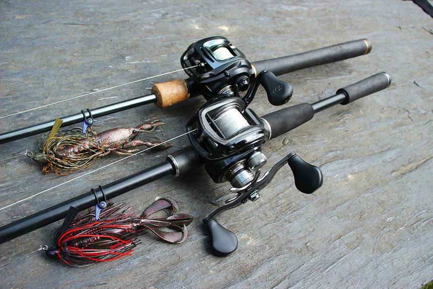 Un rubber jig, ce n’est en fait qu’une tête plombée munie d’une jupe silicone et d’une brosse suffisamment dure pour protéger l’hameçon des accrocs au milieu des bois… mais assez souple pour ne pas gêner sa pénétration au ferrage. On rajoute en trailer une écrevisse souple de trois à cinq pouces (8 à 13 cm). Les grammages les plus utilisés pour pêcher des postes vont de 10 à 14 g. Pour pouvoir utiliser ces leurres au cœur des obstacles et combattre des poissons énergiques, il est nécessaire d’utiliser un matériel robuste pour extirper chaque prise en force. L’idéal, c’est une canne casting d’environ 2m, de puissance 15-50 g, un bon moulinet rempli d’une tresse solide (20/100 minimum) avec une pointe en fluorocarbone, de 35 à 45/100 selon l’encombrement. Il faut veiller à disposer d’un moulinet permettant une récupération importante pour conserver le contrôle de la bannière en permanence.