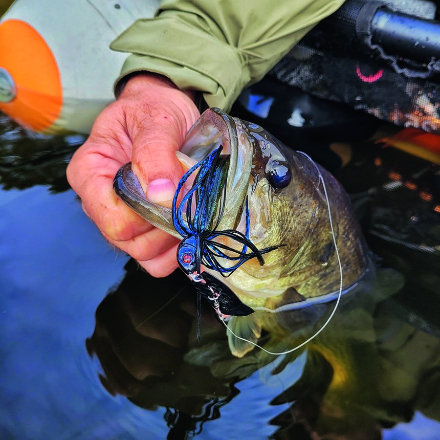 L’automne semble la saison idéale pour les pêches rapides de bordure, nommées power fishing. Les black-bass chassent de manière active des proies variées et très mobiles. La ressemblance est donc secondaire, la vitesse l’élément clé. Un spinnerbait mime grossièrement un petit banc de poissons-proie, le buzzbait surprend des carnassiers embusqués dans peu d’eau et passe au travers des feuilles mortes. Quant au bladed jig, il imite une écrevisse ou un poisson, si vous choisissez la couleur et le trailer adapté.