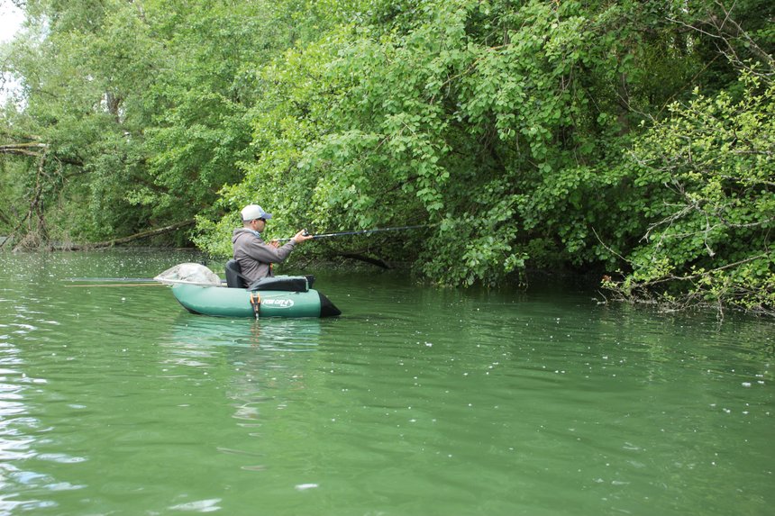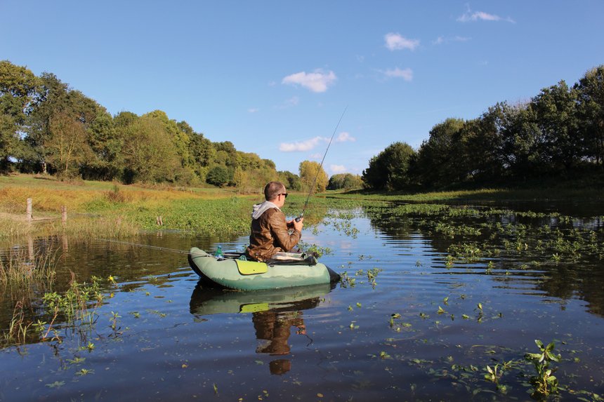 Les berges boisées n’offrent que peu d’accès pour pêcher du bord. Les plus téméraires peuvent s’aventurer à tâtons, en wading, depuis la berge d’en face si la profondeur le permet mais ces options sont limitées et même impossibles sur les plus grands milieux. C’est donc depuis une embarcation qu’en général il vaut mieux aborder ces berges encombrées. Les plus légères (float-tube, kayak) assurent une approche discrète et permettent de s’aventurer sur les zones peu profondes, le bateau convenant mieux aux grands milieux si une mise à l’eau est accessible. En pêchant depuis l’eau, face à la bordure, on n’est pas du tout contraint pour lancer et on peut bien ajuster son positionnement ainsi que l’angle de tir pour pêcher chaque ouverture dans les obstacles avec application.