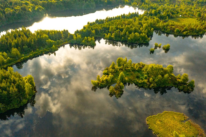 Je suis subjugué par le décor, on se croirait dans une peinture flamande de Jérôme Bosch : la lumière est magnifique et seuls quelques rayons de soleil traversent le ciel chargé. Pas un souffle de vent, les nuages se reflètent à la surface du lac, c’est féérique. Nous nous approchons de quelques pas pour percer les mystères de ce miroir. Sans surprise avec ce sol tourbeux, l’eau est couleur vieil or, comme un bon single malt ou l’eau d’un lac écossais. Julien nous annonce la couleur : « Ici, les brochets sont des bijoux ! Leur robe n’a rien à envier à celle de leurs cousins écossais. Adeptes du camouflage parfait, ils arborent des couleurs très contrastées passant du jaune pâle à l’orange clair avec des taches vert-brun à marron foncé. » Côté météo, même si l’ambiance est très belle, on sait que pour la pêche ce n’est pas terrible. Il fait très chaud pour un mois de juin, trop chaud ! Cela fait quelques jours que nous sommes dans la région, et la pêche est très difficile. Comme dans tout l’Hexagone, les niveaux d’eau sont très bas pour la saison, et les températures particulièrement élevées. Sur le lac, notre guide nous annonce un manque de 30 cm d’eau et une température en surface qui dépasse déjà les 20°C. Julien nous a prévenus, le potentiel de ce beau lac est énorme avec une très belle population de brochets… mais les conditions sont désastreuses et les poissons risquent d’être calés : la pêche va être difficile.