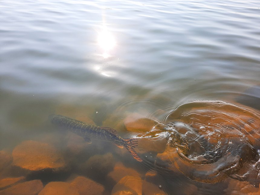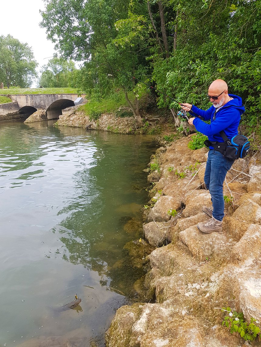 Le wading, ou pêche à pied dans l’eau, est à mi-chemin entre une technique à part entière et la pratique d’une technique. Quoi qu’il en soit, je la vois comme une technique à part entière, car elle demande un petit savoir-faire et de l’observation pour ne pas risquer de tomber dans l’eau. Cette technique, qui par sécurité se pratique à deux, permet de mettre en œuvre toutes les techniques de pêche citées précédemment, mais elle permet surtout d’avoir accès du bord à des endroits où personne ne peut avoir accès. Pêcher en wading permet de pêcher des étangs à faible profondeur où le float-tube ne passe pas, d’avoir accès à des portions de petites rivières où aucune embarcation ne peut se rendre, d’avoir accès à des marécages ou tout simplement de pêcher plus efficacement des postes du bord mais les pieds dans l’eau. J’aime beaucoup cette technique de pêche, car elle demande réflexion, concentration et observation. Il faut être discret lorsque l’on se déplace dans l’eau, avoir le pas léger, observer les zones où l’on peut marcher, observer où se tiennent les poissons, mettre en place la stratégie pour les approcher et les pêcher et, enfin, concrétiser la touche et sortir le poisson. Évidemment, inutile de s’encombrer de dizaines de leurres lorsque l’on part pêcher en wading. Une sélection brève de leurres, ou des morts maniés, une canne avec son moulinet, une pince facilement accessible pour décrocher les poissons, du fluoro pour refaire un bas de ligne et en avant. Les mystères des milieux aquatiques s’offrent à vous !