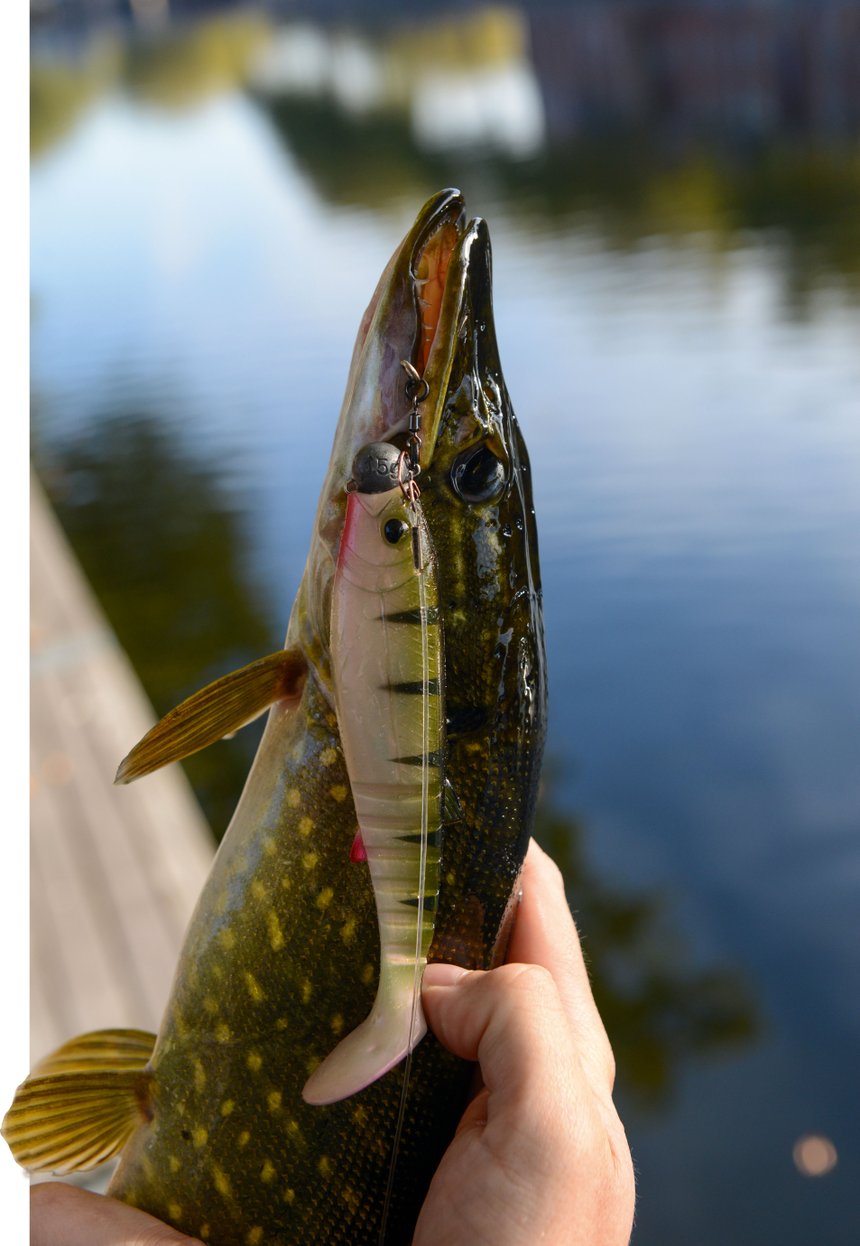 Le doux soleil automnal baigne la ville qui profite du week‑end, le bal des vélos qui s’entrecroisent nécessite quand même de garder un œil ouvert, ne serait-ce pour ne pas en accrocher sur un lancer arrière – le type d’incident qui arrive plus souvent qu’on ne le croit, quand ce n’est pas un byker sur sa Harley Davidson, mais c’est là un autre sujet. Tom et Florent décident de débuter leur prospection en longeant un quai qui borde un canal d’une trentaine de mètres de large. Tom a opté pour un leurre dur, un 4 Play coulant nouvelle génération, qui lui a bien réussi lors d’une compétition sur le même secteur la semaine passée. Son partenaire joue la carte de la complémentarité avec un Cannibal shad, coloris perche, des leurres plutôt petits (moins de 15 cm) bien que le snoek (brochet en néerlandais) soit visé en priorité. Pas un souffle de vent, le canal reflète la silhouette des arbres et l’architecture des bâtiments qui s’élèvent en arrière-plan, un Vermeer du XXIe siècle en somme. L’épuisette que Tom trimbale sur son dos laisse à penser qu’ici tout peut arriver. Le garçon, un peu nerveux par la volonté de bien faire, n’en reste pas moins concentré et fait passer son leurre entre des massifs d’herbiers avant de lui faire longer la structure du quai avec insistance. Florent se tient 30 mètres en aval, là où un ponton en bois décrit une belle courbe. Son animation est plus lente, entrecoupée de relâchés et de courtes pauses sur le fond. L’armement placé sur le dos du leurre lui évite bien des désagréments.