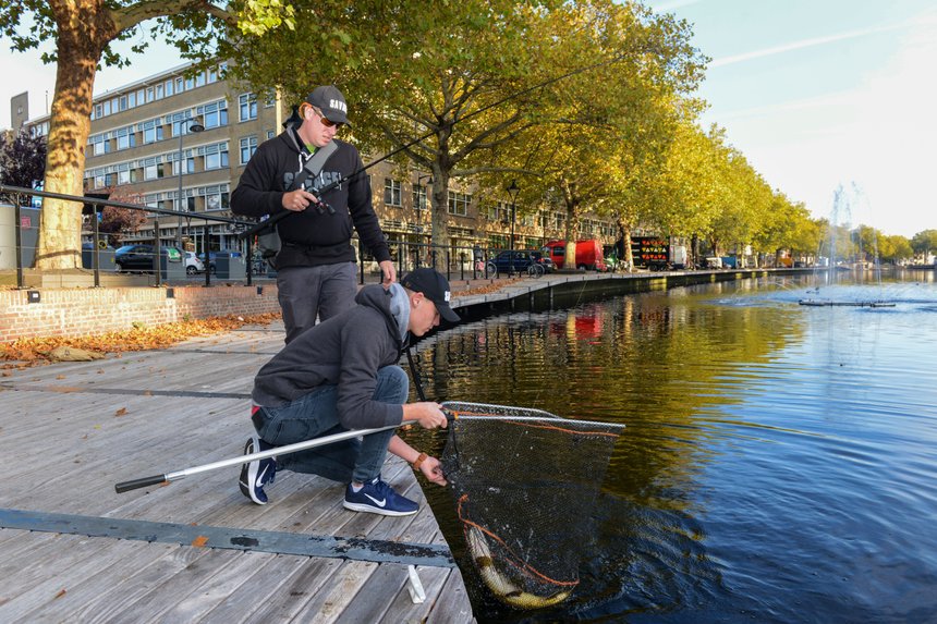 Casquette vissée sur la tête, sneakers rutilantes, sweat branché, Tom le Doyen, surnommé Din, est à peine débarqué de la voiture qu’il se jette sur le coffre pour empoigner son matériel, deux cannes et un sac de leurres pour le moins proéminent. Son compère, Florent Neveux, semble de nature plus calme bien qu’il ait subi, lui aussi, les embouteillages depuis la Belgique où tous deux résident. La traversée de la Hollande n’est pas un long fleuve tranquille. Nos deux pêcheurs, à la solide réputation de compétiteurs m’ont donné rendez-vous en plein centre de Rotterdam, le long d’un large canal bordé de terrasses de cafés.