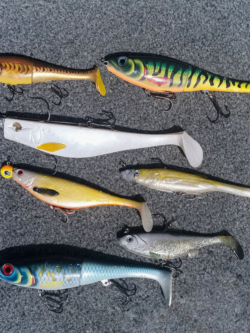 Les magasins d’articles de pêche regorgent de gros shads à armer avec une tête plombée et un triple ventral : les Dexter Shad (Illex), Shad Teez (Westin), Pro Shad (Fox) ou T-Bone (Storm) en sont autant d’exemples. Mais il existe des variantes intéressantes. Je pense aux shads pré-armés, comme le fameux Replicant (original pour pêcher creux ou shallow afin de passer au-dessus des herbiers), ou aux shads hybrides comme le Peto (Rapala), redoutable aussi bien en sub-surface à faible vitesse, que lesté avec une plombée additionnelle et ramené vite 30 cm sous la surface… Enfin, les gros hameçons texans avec des palettes sont également de supers « supports » pour un shad ramené en linéaire. La palette apporte un vrai plus et le texas rigging permet de prospecter dans des zones plus encombrées… Les 7346 Swimbait Blade de VMC sont parfaits pour cet exercice. Le monde du shad en linéaire est de plus en plus vaste, et certains ne jurent plus que par cette technique. La plupart des eaux se prêtent bien à ce jeu, ce qui en fait une technique vraiment passe-partout. Elle est hyperefficace sur les brochets modestes comme sur les plus gros. Beaucoup de spécialistes ont d’ailleurs abandonné les leurres durs pour leur préférer de gros leurres souples. Si vous n’avez jamais franchi le cap, c’est le moment. La mise en œuvre est simple et rapide, et les résultats seront vite au rendez-vous. Si vous êtes déjà convertis, n’hésitez pas à mettre en œuvre une des nombreuses variantes décrites plus haut, avec une mention spéciale pour la récupération rapide… Prenez vos premiers poissons comme ça, et quand la confiance sera là, les cartons ne seront pas loin !