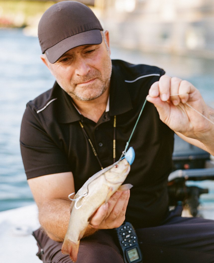 « Je suis issu de la vieille école, celle qui a commencé à pêcher au vif avant d’adopter le manié et la cuiller comme techniques complémentaires. Il y a une trentaine d’années, personne ne se posait de question et il était courant de partir pêcher aux appâts naturels et au leurre en même temps, afin de maximiser ses chances d’avoir une prise. Tout ceci a bien changé et il devient rare de voir un pêcheur de sandre en verticale embarquer quelques vifs pour pêcher au fire ball.