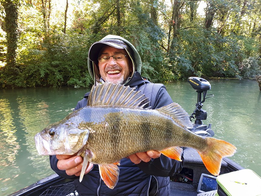 En rivière, les perches commencent à déserter les zones de courant pour se rapprocher des amortis, des palplanches ainsi que des entrées et intérieurs de bras mort. Bref partout où le courant est ralenti voire nul, il est possible de trouver de grosses perches. Ces zones correspondent aussi aux secteurs que regagnent les petits poissons blancs avec la chute des températures de l’eau. Ils vont alors se regrouper en bancs plus ou moins importants et les perches ne seront jamais très loin. On peut alors assister à de véritables frénésies avec des chasses qui éclatent de partout. Il est possible aussi qu’il ne se passe rien, qu’il n’y ait pas de chasses ou qu’elles ne soient pas visibles mais que les poissons soient quand même là.