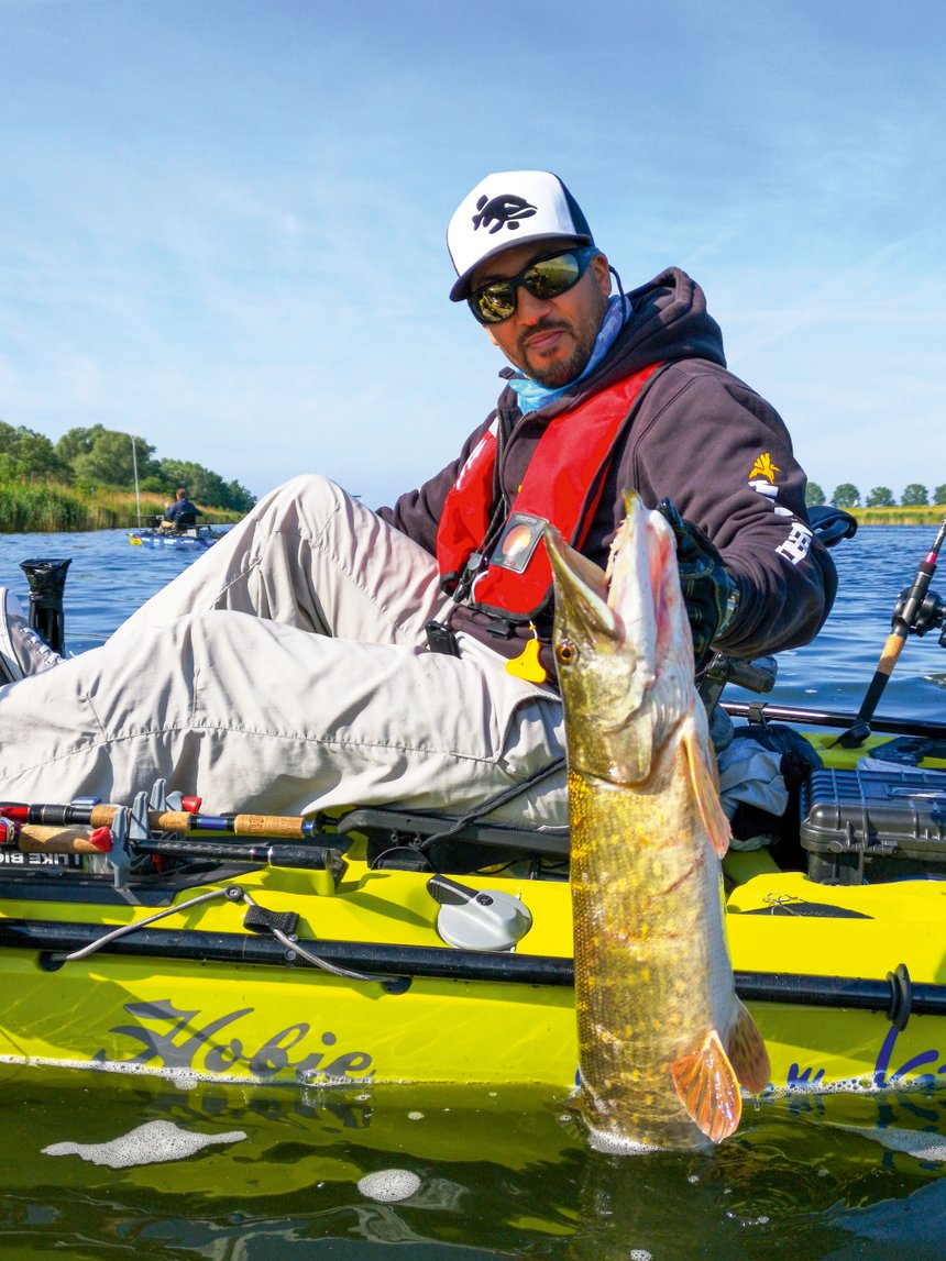 S. E. B. : Ma première pensée à l’époque était de savoir comment accéder rapidement et confortablement à de bons spots avec peu d’efforts. Ce n’est que plus tard que j’ai réalisé que le kayak apportait de si bonnes sensations sur l’eau. Avec le kayak, je suis mobile sur l’eau, mais aussi sur les routes ; je n’ai pas besoin de remorque ni de mise à l’eau. En ce qui concerne les coûts, un kayak est nettement moins cher à entretenir qu’un bateau. Je peux pêcher partout, même là où les bateaux et les moteurs sont interdits. Beaucoup de plans d’eau magnifiques, comme les petits lacs et les rivières, n’ont pas de mise à l’eau, alors que j’ai accès à tous les plans d’eau en tant que pêcheur en kayak. Je peux approcher silencieusement les bons endroits, je peux pêcher avec le kayak dans les herbes sans rester coincé, je peux aussi pêcher des zones très plates sans problème.