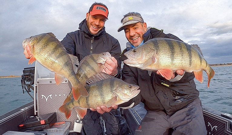 C’est une belle période pour les amoureux des leurres de surface! C’est une saison où je commence à surveiller leur présence et leur activité, mais ce n’est pas encore la meilleure période pour faire de beaux scores. L’automne est la période de gavage, c’est la plus passionnante pour la traque des grosses perches. À mesure que les températures diminuent, elles deviennent plus actives dans leur quête de nourriture avant l’hiver. Les zones riches en poissons blancs avec des herbiers sont à privilégier. Il est possible de les prendre avec toutes les techniques possibles, leurres durs, souples, métalliques, pêche rapide, lente, etc. C’est la saison où je commence à les pêcher sérieusement même s’il faut parfois arriver à trier les petites pour prendre quelques grosses. L’activité diminue ensuite, mais offre de belles opportunités pour capturer de jolis trophées en hiver. Il faut prendre la saison au sérieux car les grosses sont regroupées et peuvent offrir de bien belles séries. Il faut souvent utiliser des techniques plus lentes. Adaptez vos techniques en conséquence, car cela peut faire la différence entre une journée ordinaire et une mémorable avec de belles prises.