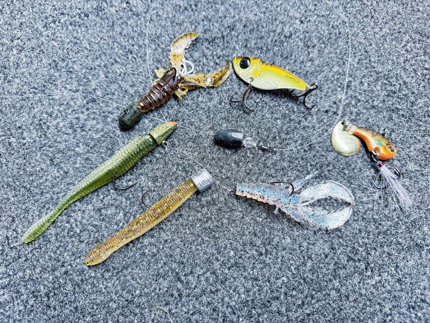 La dernière solution est la pêche lente au leurre souple avec toutes ses subtilités. Fixé sur une tête plombée, c’est un classique qui fonctionne toujours bien. Sur les postes comportant des cailloux, préférez une imitation d’écrevisse en pêche lente où vous irez gratter le fond. Le Ned rig est également une technique assez impressionnante pour la capture des gros poissons. Je m’en sers souvent pour terminer le travail, quand elles ont compris la musique avec les autres leurres. La clé est de pêcher des poissons bien localisés et d’augmenter le temps de pause entre les petites animations pour que les grosses zébrées ramassent un leurre immobile sur le fond.