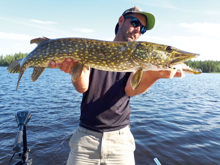 En été, lorsque les brochets se cachent dans les bois morts, les racines de saules… et sont focalisés sur les écrevisses, le rubber jig n’a pas d’équivalent pour déclencher l’activité de ces derniers. On peut l’utiliser soit au cœur des obstacles, en le laissant couler au fond des branches et en le ramenant lentement proche du fond en prospectant branche par branche, soit en swimming jig, c’est-à-dire en le lançant dans les obstacles puis en le ramenant de manière linéaire, pas très profond et plutôt proche de la surface et en le laissant taper et passer les branches naturellement. Deux animations complémentaires, très attractives, à utiliser suivant l’activité et la zone de tenue des poissons. Il faut choisir un jig avec une brosse assez dure pour ne pas s’accrocher trop souvent, mettre si possible une écrevisse en trailer, ferrer très fort et avoir une ligne ainsi qu’une canne assez puissante pour sortir d’autorité les poissons. On appréciera que les touches soient souvent visibles et très violentes dans ce type de pêche !