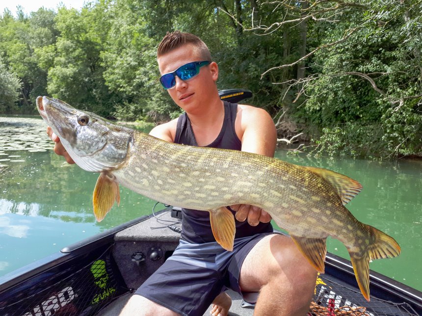 J’utilise aussi le chatterbait dans ce genre de conditions en rivière, mais dans ce cas pour accentuer le côté planant du leurre, en quelque sorte l’arrivée « naturelle » du leurre sur le spot et la possibilité ainsi de rester plus longtemps dans la zone de touche. Une autre utilisation du chatterbait, qui le place alors bien au-dessus du spinnerbait en matière d’efficacité, c’est lorsque les brochets sont focalisés sur les écrevisses à la fin du printemps et l’été. Ramené en linéaire ou entrecoupé de pauses sur le fond, il n’a pas son pareil pour déclencher la touche. D’ailleurs, cette dernière sera souvent lourde, au moment où l’on décolle le leurre du fond. Le chatterbait reste un leurre aux vibrations plus agressives que le spinnerbait, il faudra veiller à ne pas l’animer trop sec, sous peine de produire l’effet inverse à celui recherché : c’est-à-dire ne pas produire de touches, voire à faire fuir le poisson en raison de vibrations trop fortes. Je dis souvent que la bonne vitesse de récupération, c’est lorsque l’on sent vibrer la palette dès que l’on mouline. Pas plus, pas moins. Vous l’aurez compris, ma préférence va principalement vers le spinnerbait dans la plupart des situations. En complément, je n’oublie cependant pas le chatter, vraiment indispensable en certaines occasions.